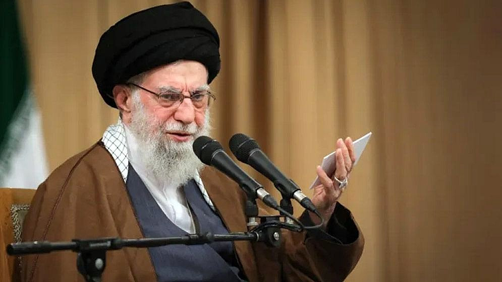ইরানের সর্বোচ্চ নেতা আয়াতুল্লাহ আলী খামেনি ধর্মীয় অনুষ্ঠানে ভাষণ দিচ্ছেন। ছবি: সংগৃহীত
