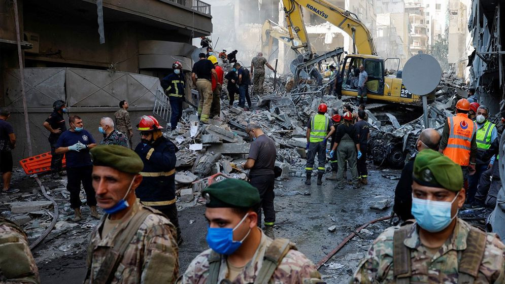 লেবাননের বেকা উপত্যকায় ইসরাইলি বিমান হামলার পর ধ্বংসস্তূপে উদ্ধার অভিযান। ছবি: সংগৃহীত