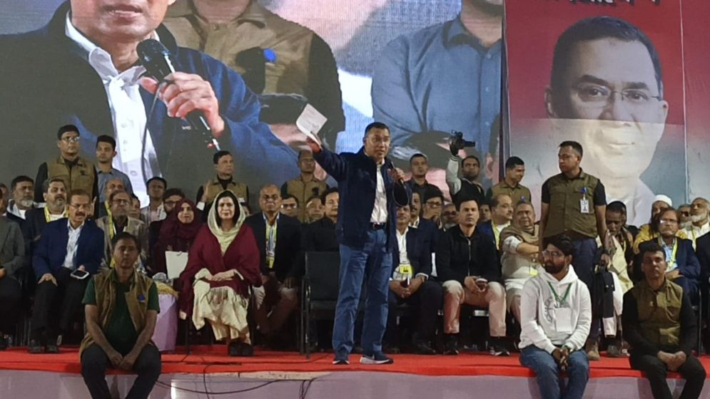 গাজীপুরের ঐতিহাসিক রাজবাড়ি ময়দানে বিএনপির জনসভায় বক্তব্য দেন তারেক রহমান। ছবি সংগৃহীত